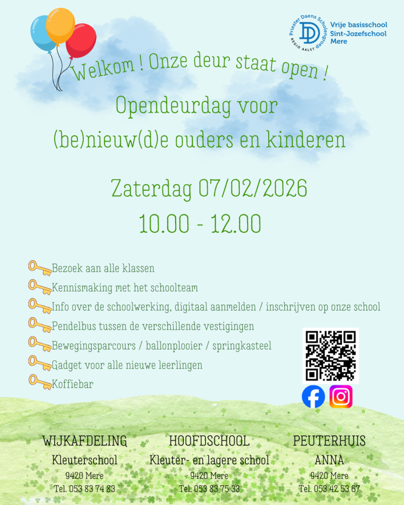 Bij VBS Sint-Jozefschool Mere begeleiden we kinderen van 2,5 tot 12 jaar op een warme, betrokken en kwaliteitsvolle manier.