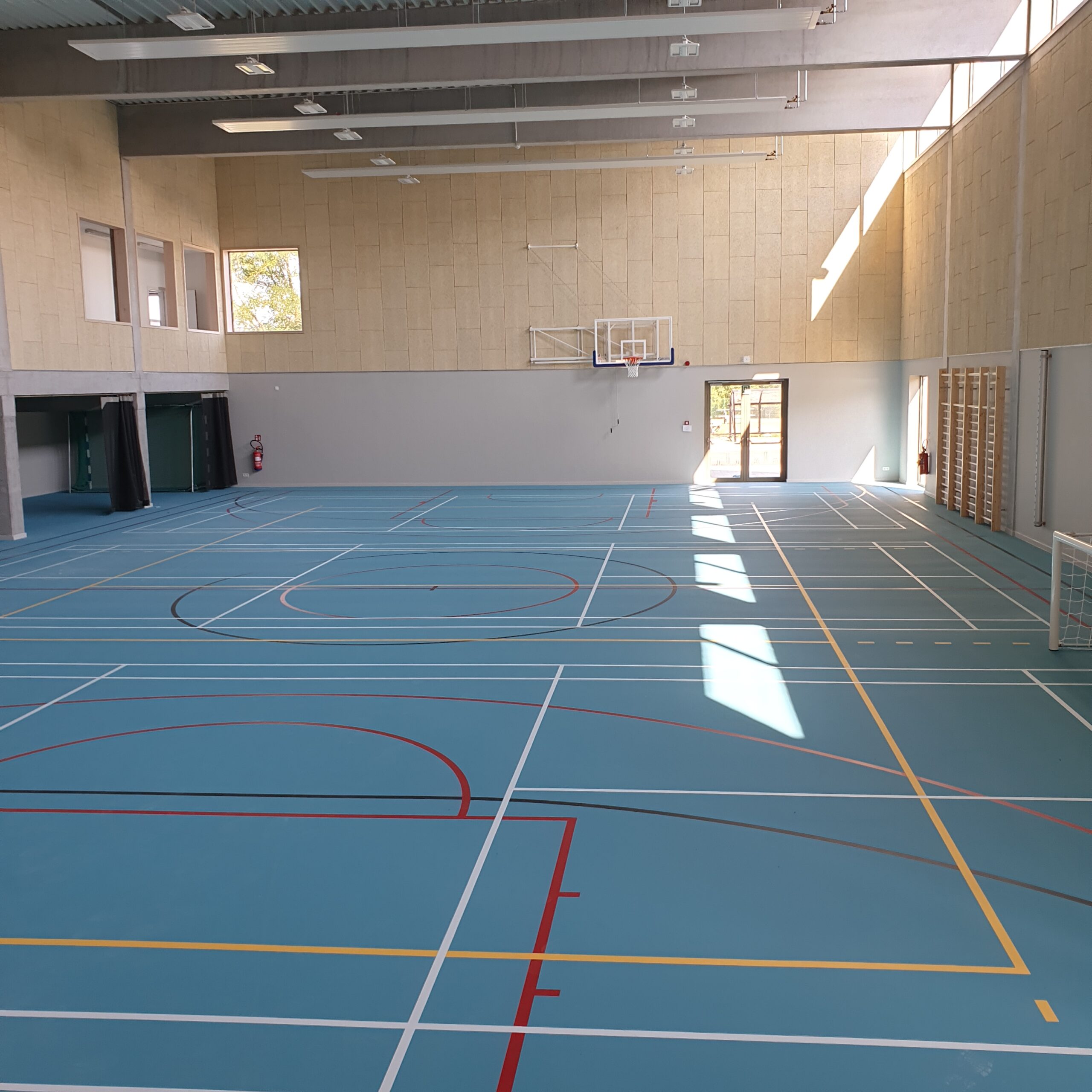 In de nieuwbouwvleugel krijgen leerlingen in moderne sportzaal alle ruimte om zich sportief uit te leven.